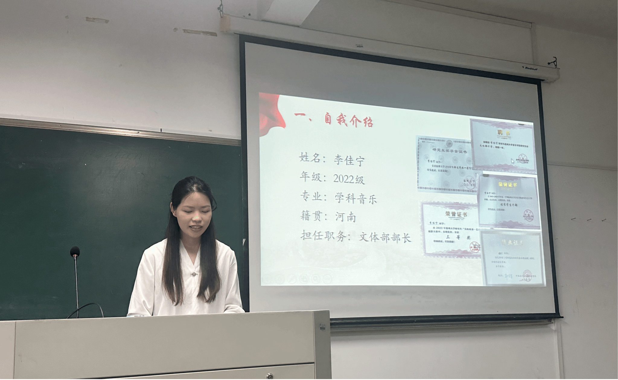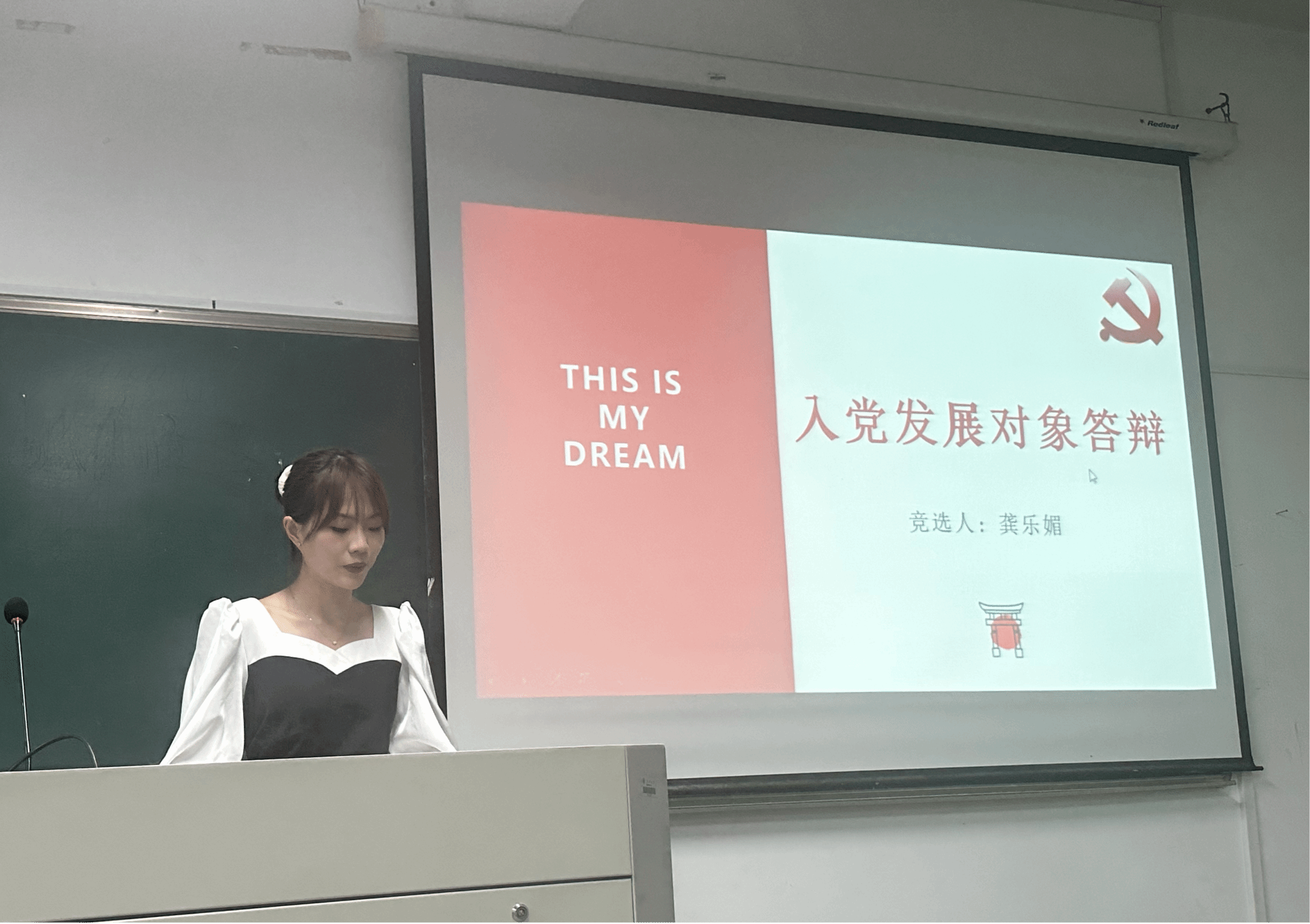 第二项议程由15名积极分子依次通过ppt的形式分别从个人介绍、工作实践、入党动机、未来规划等方面进行了充分的自我介绍。